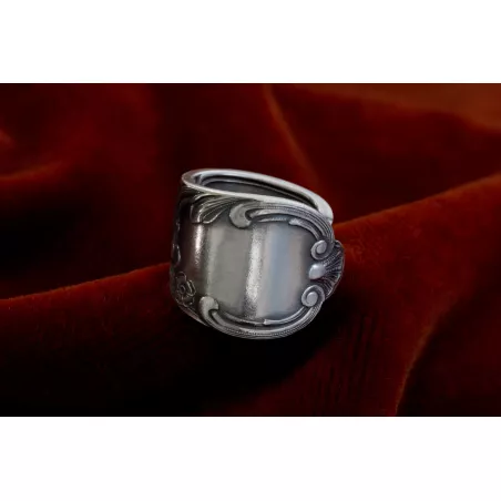 Besteckring R274 gefertigt aus dem Stielende eines alten Sahnelöffels <Slber-Auflage