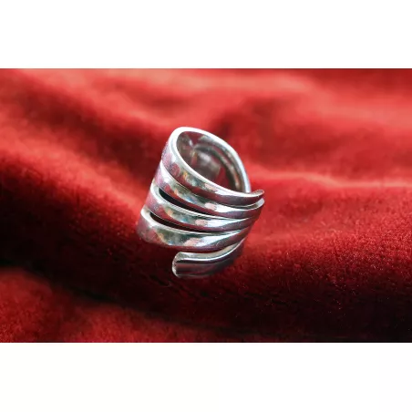 1 Besteckring gearbeitet aus den Gabelspitzen einer modernen Menuegabel. Deckname: "Quadro" - Silber-Auflage