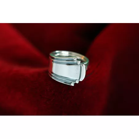 1 Besteckring gearbeitet aus dem Stielende eines Sahnelöffels - sieht ein bißchen aus wie ein einfahrbares Teleskop. Silber-Auflage